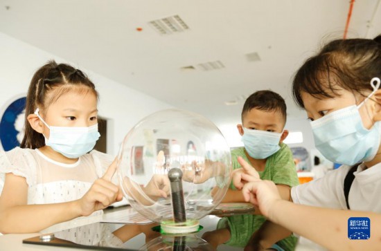 8月3日,在河北省邢臺市南和區科技館,賈宋鎮南師村的孩子們在學習科普知識。