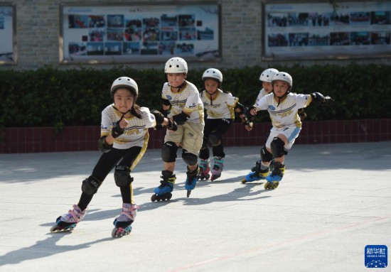 8月10日,合肥市鳳凰城小學的學生在暑期托管班里學習輪滑。