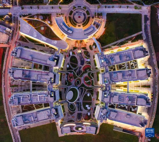 俯瞰蝴蝶展翅造型的香港科技大學(廣州)校園建筑群(8月16日攝,無人機照片)。