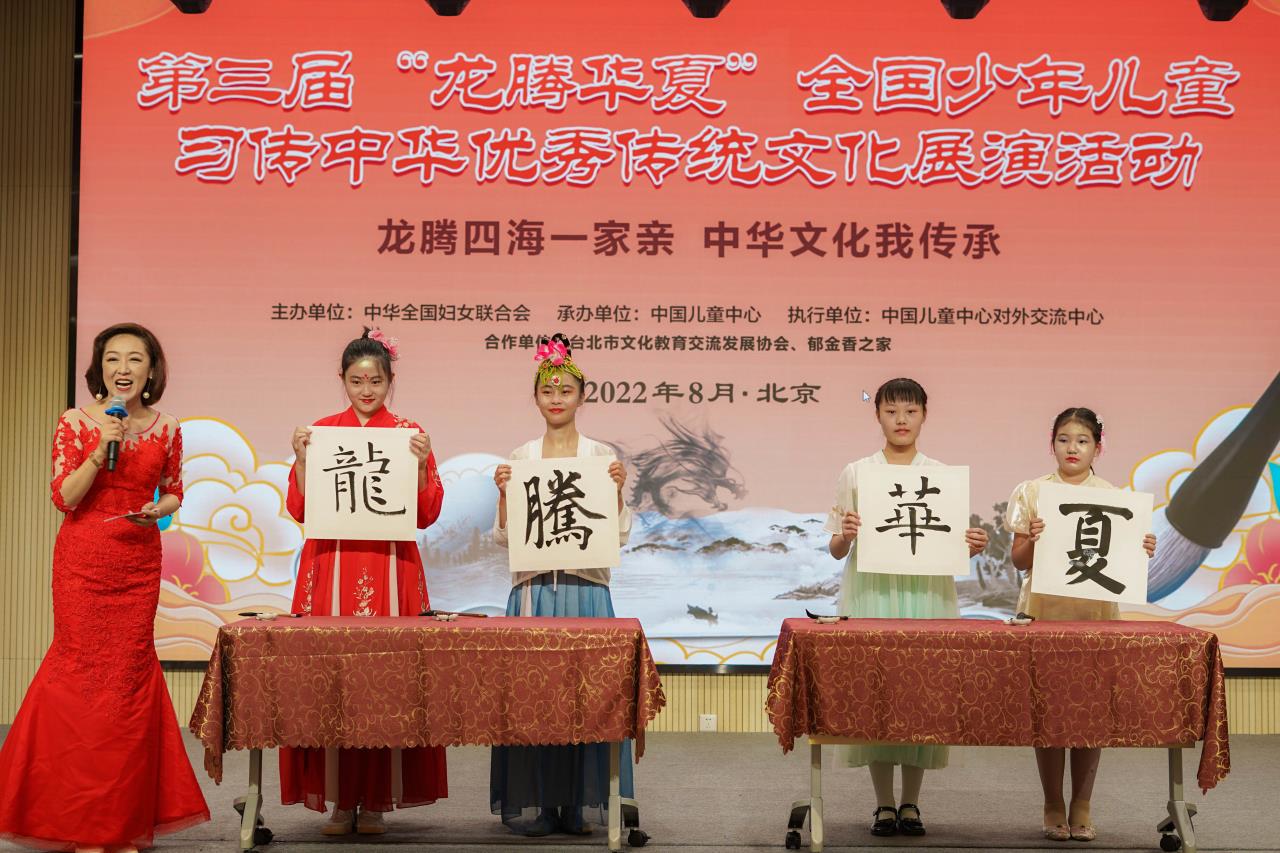 人民網北京8月23日電 近日,由中華全國婦女聯合會主辦、中國兒童中心承辦的第三屆“龍騰華夏”全國少年兒童習傳中華優秀傳統文化展演活動舉行。據悉,本次活動以“龍騰四海一家親 中華文化我傳承”為主題,自今年5月啟動以來,面向兩岸少年兒童持續開展線上交流和輔導,累計參與人數近1700人次,共評選出15位“中華文化小使者”。