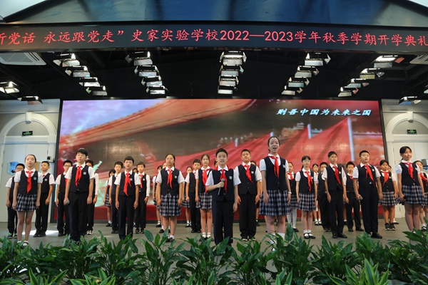在史家實驗學校的開學典禮上,特別設置了“厚植家國情 實驗少年行”板塊。孩子們用各式各樣的服務性學習活動,展示自己身體力行踐行“中國精神、傳承有我”的新時代少年風貌和不以善小而不為、心系家國的新時代少年應有的行動力。