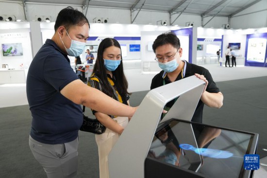9月17日,在2022年全國大眾創業萬眾創新活動周合肥主會場的主題展區,參觀者體驗無介質全息成像技術應用。