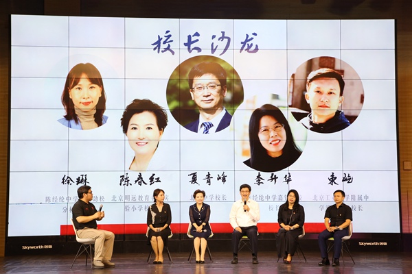 會議現場,北京中學、陳經綸中學嘉銘分校、陳經綸中學帝景勁松分校、工大附中新升分校、北京明遠教育書院實驗小學等學校的校長圍繞以體育人展開對話沙龍,分享各校體育育人工作思路和育人成效。