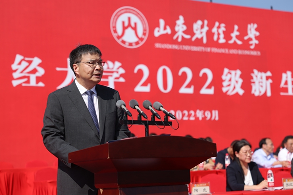 山東財經大學校長趙忠秀在2022級新生開學典禮上講話。校方供圖