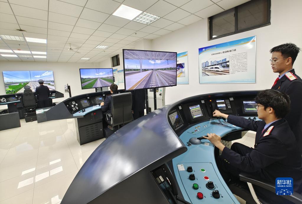 在西安鐵路職業技術學院,學生在課堂上進行動車組駕駛與運用實訓演練(2022年4月29日攝)。新華社記者 李一博 攝