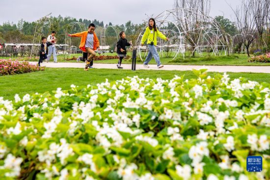 10月5日,在天華百卉園內,小朋友在戶外玩耍。
