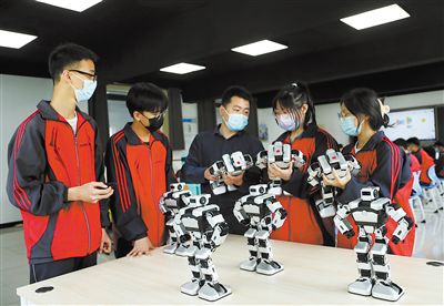 圖為在河北省石家莊市井陘縣職業技術教育中心,老師指導學生學習機器人相關知識。新華社記者 駱學峰攝