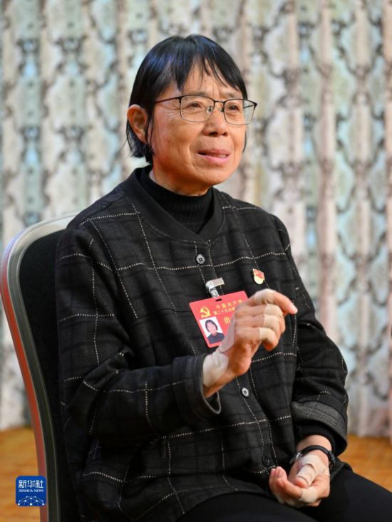 10月16日,張桂梅代表接受記者采訪。新華社記者 陳益宸 攝