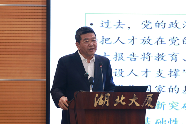 “過去,黨的政治報告往往把教育放在民生部分,把科技放在經濟部分,把人才放在黨的領導部分。這次放在經濟之后,作為第五部分,將教育、科技、人才統合,提出‘教育、科技、人才是全面建設社會主義現代化國家的基礎性、戰略性支撐’,充分體現了黨對社會主義現代化建設規律認識的新突破,凸顯了教育、科技、人才在社會主義現代化國家建設中的基礎性、全局性、戰略性地位!睆堉居抡劦。
