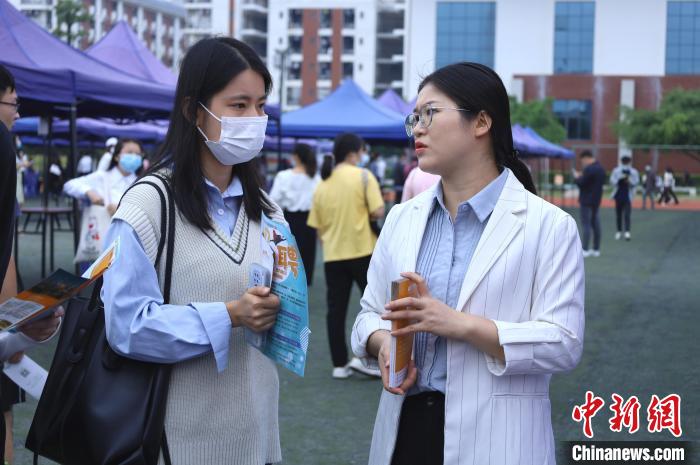 圖為求職者在咨詢用人單位信息。 覃炫銘 攝