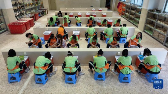 11月20日,聽障學生在泉州市特殊教育學校陶藝制作中心上陶藝課(無人機照片)。