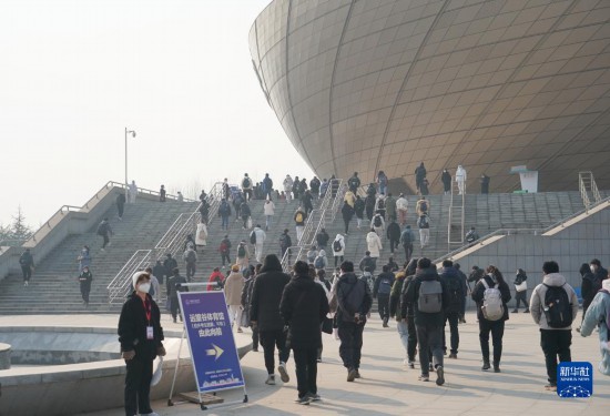 12月24日,在西安電子科技大學考點,考生前往校體育館午餐休息。