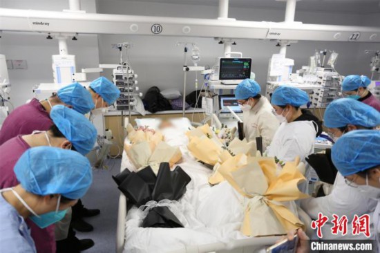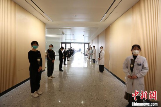 圖為捐獻者離開ICU病房前,科室醫生及其生前同學老師向其默哀致敬!V西醫科大學第二附屬醫院供圖