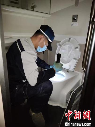 春運返鄉高峰到來,列車上旅客服務設施的使用率隨之達到頂峰。隨車機械師彭落秋絲毫不敢懈怠,穿梭在人流中巡視設備設施狀態!拔业幕榻涞暨M廁所里了!”一名旅客神色慌張地向彭落秋求助。