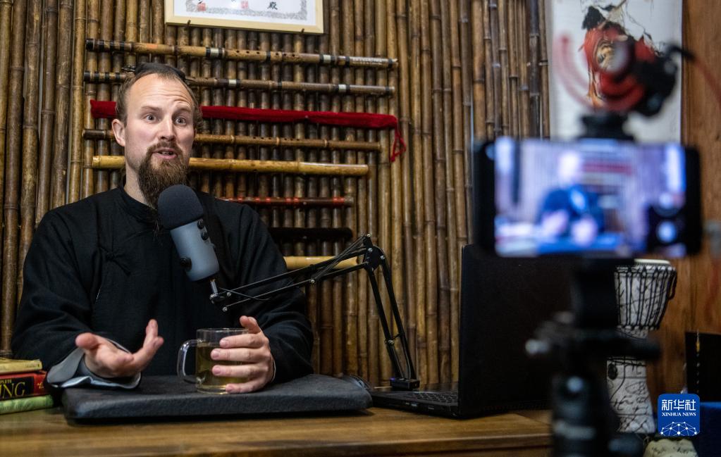 隨著修行的不斷深入,杰克的學習范圍從武術拓展到中國傳統文化、樂器等。他還將自己的學習經歷和心得體會制作成視頻、音頻,分享在海外社交平臺!爸袊幕档媒K身學習,我希望可以成為不同文化間溝通的‘橋梁’!苯芸苏f。