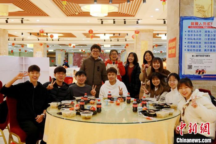 除夕夜,華僑大學境內外留校學生領取學校免費提供的年夜飯套餐!墙x 攝