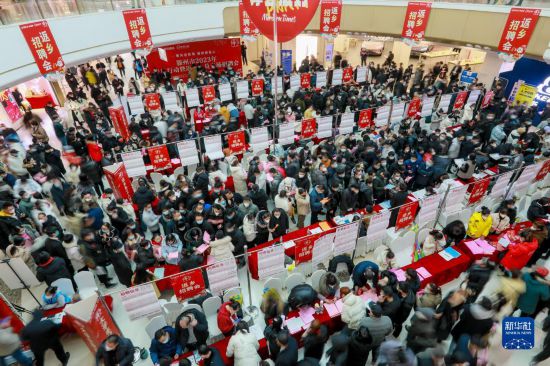 1月27日,求職者在山東省滕州市2023年春風行動暨返鄉人員專場招聘會上尋找適合自己的就業崗位。
