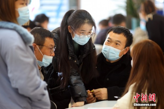 1月31日,求職者在江蘇省零工市場大廳內的企業招聘臺前咨詢。當日,“創響江蘇 春風行動”2023年度“促返崗·保用工”專題活動——“來即上崗”專場招聘會在江蘇省零工市場舉行,省市區三級人社部門精心挑選58家單位提供2300余個就業崗位,滿足各種類型不同層次求職者的就業需求。 中新社記者 泱波 攝