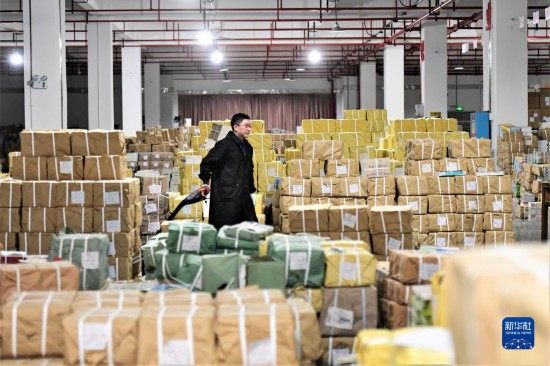 1月31日,在湖南省郴州市萬信達工業園新華書店倉儲中心,工作人員在搬運教材。