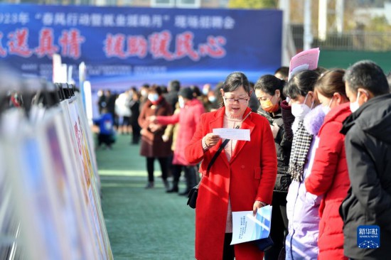 1月31日,求職者在湖北省襄陽市?悼h2023年春風行動暨就業援助月現場招聘會上了解崗位信息。新華社發(楊韜攝)