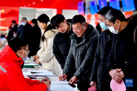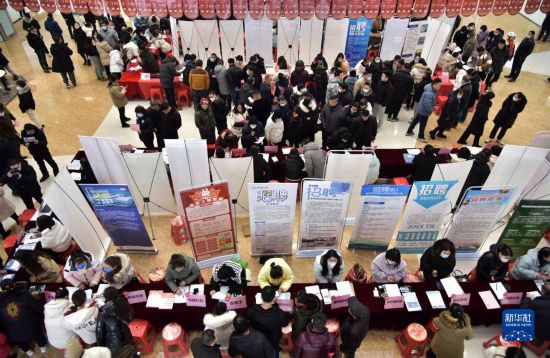 1月29日,求職者在山東省青州市人才資源市場“春風行動暨就業援助月專場招聘”中了解用工信息。新華社發(王繼林 攝)