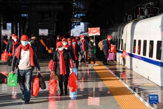 1月30日,在重慶西站,乘坐2023年重慶首趟務工定制專列的旅客來到站臺準備登車。新華社記者 王全超 攝