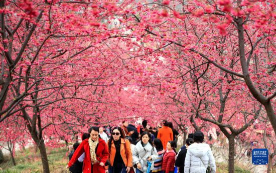 2月19日,游客在四川省瀘州市江陽區丹林鎮建設村櫻花谷景區游玩。
