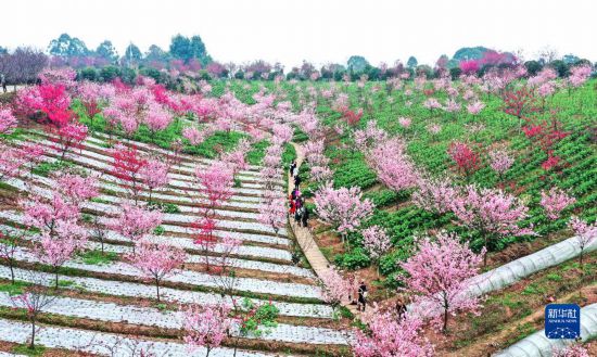 2月19日,游客在四川省瀘州市江陽區丹林鎮建設村櫻花谷景區游玩。