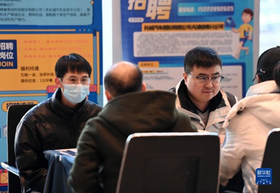 2月19日,在天津經濟技術開發區春季促就業暖心行動公益現場招聘會,招聘企業工作人員與求職者交流。新華社記者 趙子碩 攝
