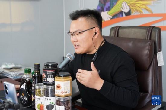 2月28日,王昌在來安縣水口鎮擁巷村的直播間里直播推介鄉村農產品。