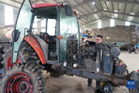 2月28日,王昌在來安縣水口鎮擁巷村對農業機械進行春耕前的檢修。