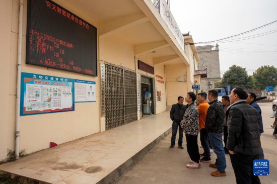 在江西省安義縣喬樂鄉馬溪村,當地村民在“村頭寶”平臺上瀏覽近期的企業招工信息(3月3日攝)。