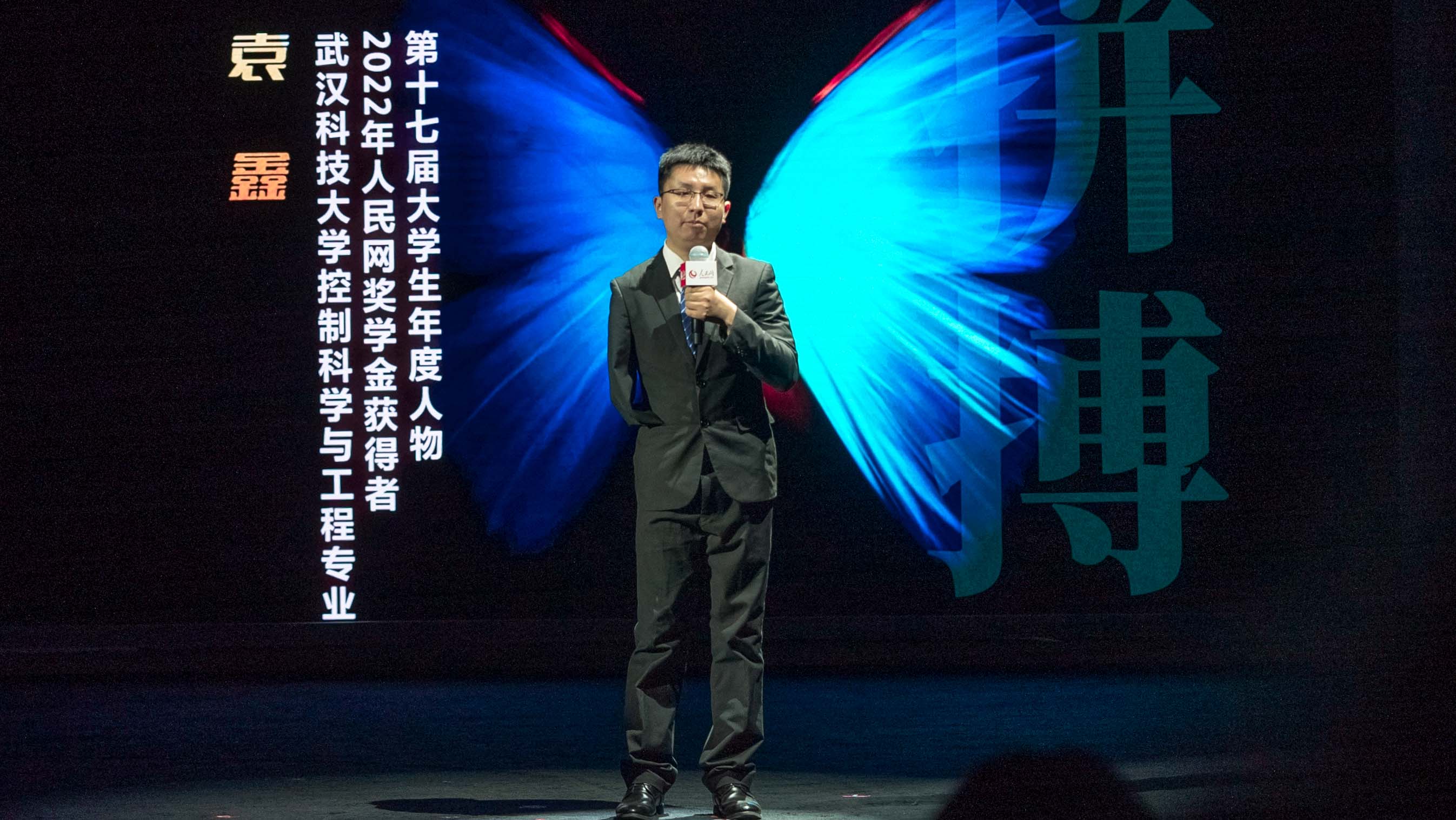 第十七屆大學生年度人物、2022年度人民網獎學金一等獎獲得者武漢科技大學控制科學與工程專業博士生袁鑫分享自己的故事。實習生韓華良 攝