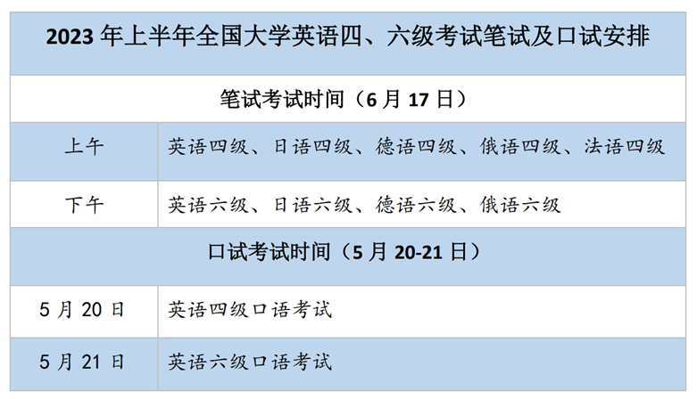 2023年上半年全國大學英語四六級筆試6月17日舉行