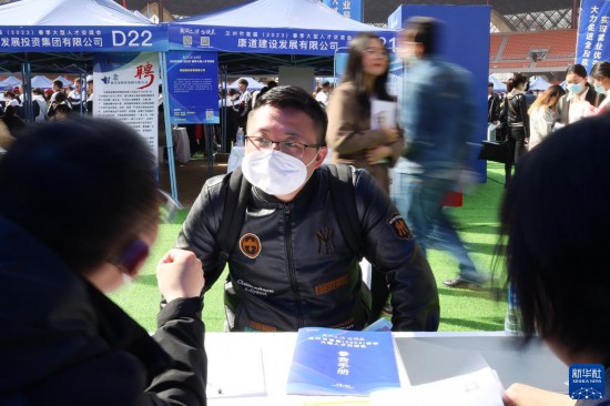 當日,甘肅省蘭州市首屆(2023)春季大型人才交流會開幕;顒庸舱骷1179家招聘企業提供35000多個崗位,以現場招聘、直播帶崗、職業技能交流等形式為高校畢業生和求職者提供送崗服務。