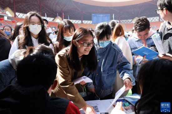 當日,甘肅省蘭州市首屆(2023)春季大型人才交流會開幕;顒庸舱骷1179家招聘企業提供35000多個崗位,以現場招聘、直播帶崗、職業技能交流等形式為高校畢業生和求職者提供送崗服務。