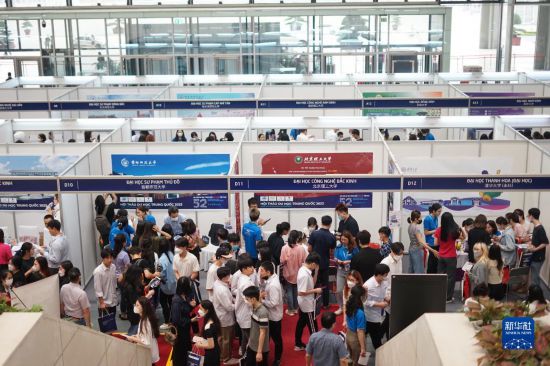 4月22日,在位于越南首都河內的國家會議中心,留學咨詢者絡繹不絕。新華社記者 胡佳麗 攝