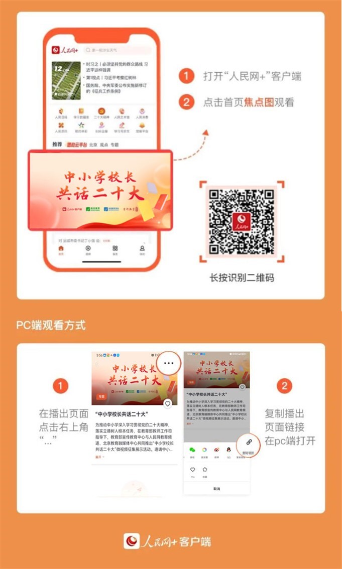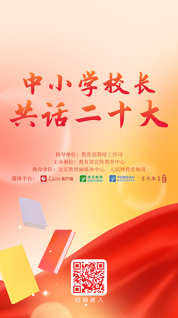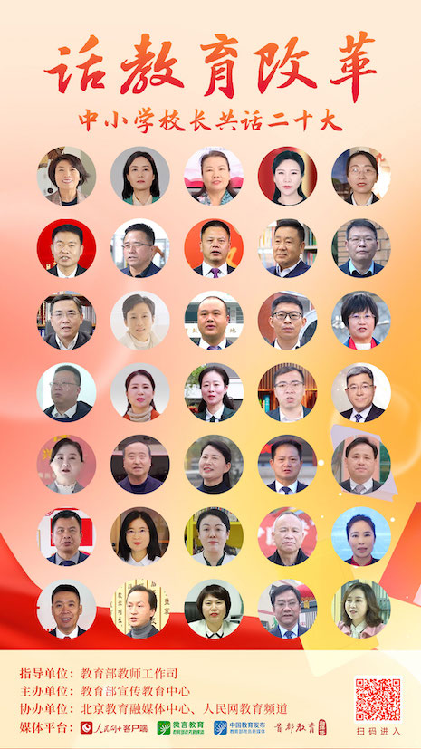 5月12日起,“人民網+”客戶端推出“中小學校長共話二十大”專題節目,每日11:00上新,圍繞黨的領導、鑄魂育人、教育改革、教育公平、強師興校等話題述成績、言感悟、談現狀、話未來,切實把黨的二十大精神轉化為辦學治校、教書育人的實際行動。讓我們一起傾聽全國百位中小學校長共話二十大,共同描繪教育事業發展的新藍圖。