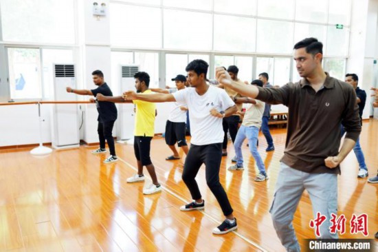 近日,外國留學生在廣西南寧學習中國傳統的養生功法八段錦!∮窀 攝