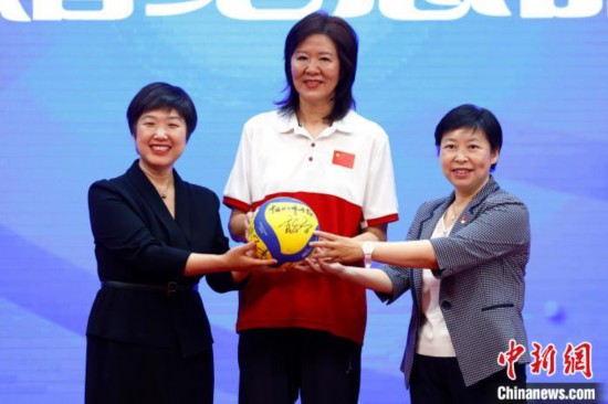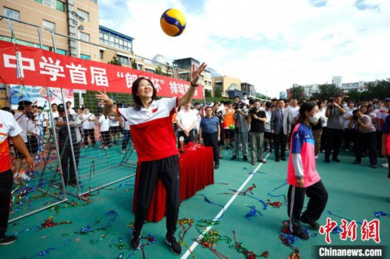 圖為郎平為陳經綸中學首屆“郎平杯”排球聯賽開球!≈行律缬浾 富田 攝