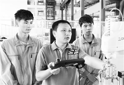 “工業機器人的應用范圍越來越廣、精度不斷提高,同時也更智能化,更有決策性。這要求我們在教學中,必須注重與企業生產一線的聯系!比螐┭稣f。他在上課中發現,傳統的課堂教學存在無法調動學生學習積極性、與企業生產一線聯系不密切等問題。