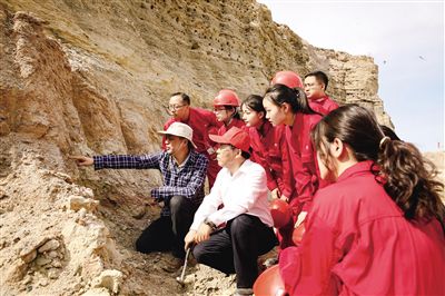 國家級教學名師朱筱敏與克拉瑪依校區學生進行野外地質實習。學校供圖