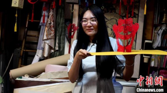 8月8日,陳怡蓁體驗非遺項目漳浦剪紙。漳州市文旅局供圖