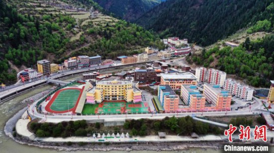 圖為四川阿壩州壤塘縣寄宿制小學(無人機拍攝)!≈行律缬浾 安源 攝
