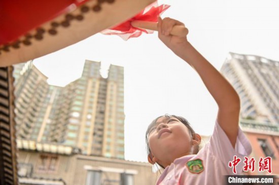 已在朝天小學港澳子弟班就讀4年的崔梓琳來自香港,她是學校的校史小講解員,會用英語向嘉賓介紹學校的歷史。平日,她也會與香港的家人朋友講述在廣州的學習和生活情況。