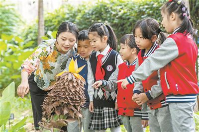 圖為云南省昆明市潤城學校的老師帶著學生參觀生物多樣性科普宣傳示范基地。 新華社記者 胡超攝