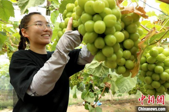 9月2日,潘雅潔在采摘葡萄!£惣覙 攝