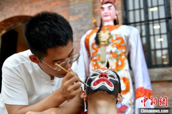 圖為兩岸青年正在繪制“家將”臉譜。中新網記者 呂明 攝