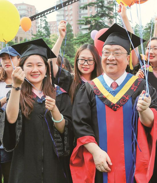 全國政協委員、北京師范大學黨委書記程建平與畢業生們在一起。