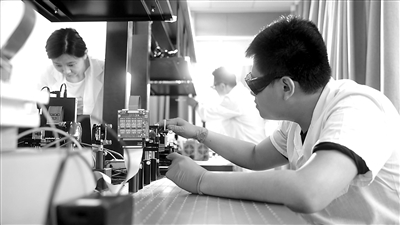 北京理工大學師生在電子封裝技術實驗室進行集成電路芯片倒裝焊固態互連試驗北京理工大學供圖